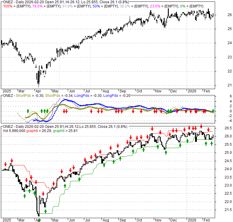 Price has closed above its short-term moving average. Short-term moving average is currently below mid-term; and above long-term moving average. From the relationship between price and moving averages: This stock is NEUTRAL in short-term; and NEUTRAL in mid-long term.[ ONEZ ] has closed below upper band by 32.8%. Bollinger Bands are 22.1% narrower than normal. The current width of the bands does not suggest anything about the future direction or movement of prices.