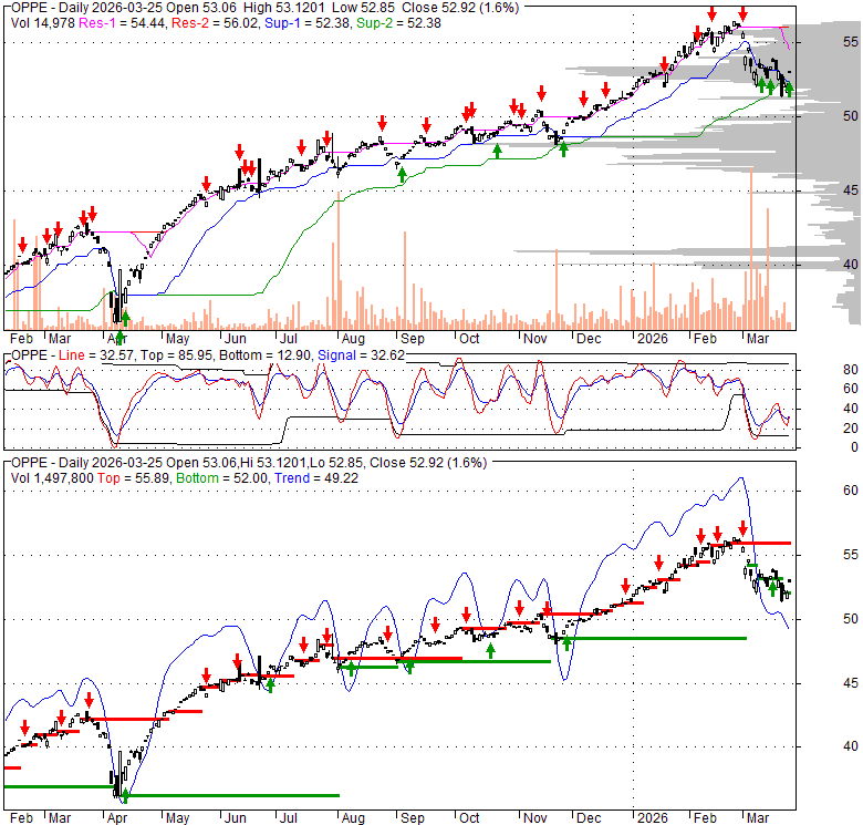 Price has closed above its short-term moving average. Short-term moving average is currently below mid-term; and above long-term moving average. From the relationship between price and moving averages: This stock is NEUTRAL in short-term; and NEUTRAL in mid-long term.[ OPPE ] has closed below upper band by 49.0%. Bollinger Bands are 6.6% narrower than normal. The current width of the bands does not suggest anything about the future direction or movement of prices.