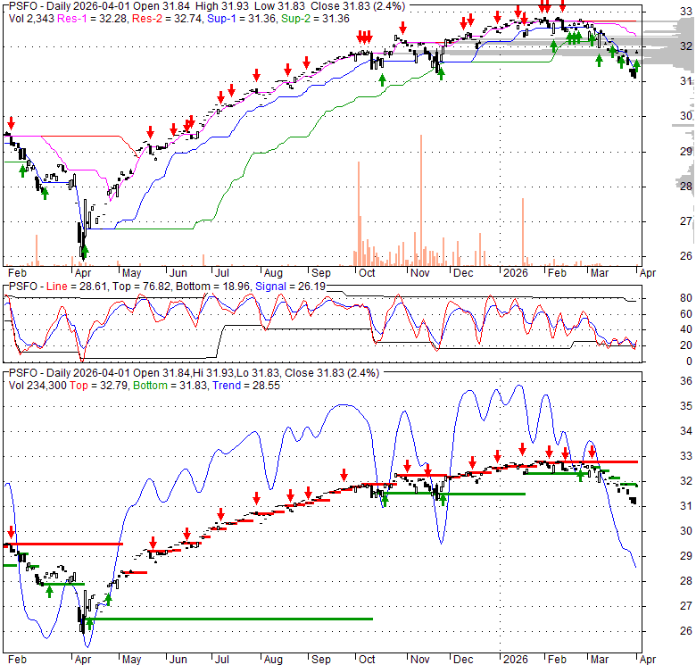 Price has closed above its short-term moving average. Short-term moving average is currently below mid-term; and below long-term moving average. From the relationship between price and moving averages: This stock is NEUTRAL in short-term; and NEUTRAL in mid-long term.[ PSFO ] has closed below upper band by 43.1%. Bollinger Bands are 82.8% wider than normal. The large width of the bands suggest high volatility as compared to its normal range. The bands have been in this wide range for 12 days. This is a sign that the current trend might continue.