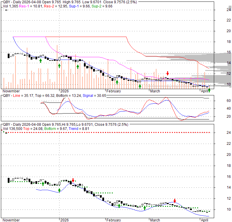 Price has closed above its short-term moving average. Short-term moving average is currently below mid-term; and below long-term moving average. From the relationship between price and moving averages: This stock is NEUTRAL in short-term; and NEUTRAL in mid-long term.[ QBY ] has closed above bottom band by 33.9%. Bollinger Bands are 0% narrower than normal.
