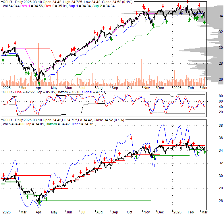 Price has closed above its short-term moving average. Short-term moving average is currently below mid-term; and above long-term moving average. From the relationship between price and moving averages: This stock is NEUTRAL in short-term; and NEUTRAL in mid-long term.[ QFLR ] has closed below upper band by 43.0%. Bollinger Bands are 47.8% narrower than normal. The narrow width of the bands suggests low volatility as compared to its normal range. The bands have been in this narrow range for 5 bars. This is a sign that the market may be about to initiate a new trend.