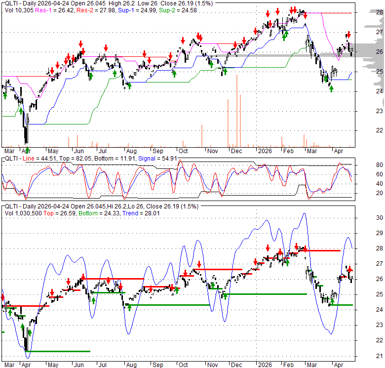 Price has closed above its short-term moving average. Short-term moving average is currently above mid-term; and below long-term moving average. From the relationship between price and moving averages: This stock is BULLISH in short-term; and NEUTRAL in mid-long term.[ QLTI ] has closed below upper band by 42.9%. Bollinger Bands are 5.7% wider than normal. The current width of the bands does not suggest anything about the future direction or movement of prices.