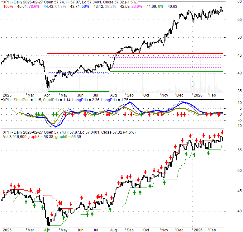 Price has closed below its short-term moving average. Short-term moving average is currently above mid-term; and above long-term moving average. From the relationship between price and moving averages: This stock is NEUTRAL in short-term; and BULLISH in mid-long term.[ XPH ] has closed above bottom band by 44.0%. Bollinger Bands are 45.3% narrower than normal. The narrow width of the bands suggests low volatility as compared to its normal range. The bands have been in this narrow range for 0 bars. This is a sign that the market may be about to initiate a new trend.